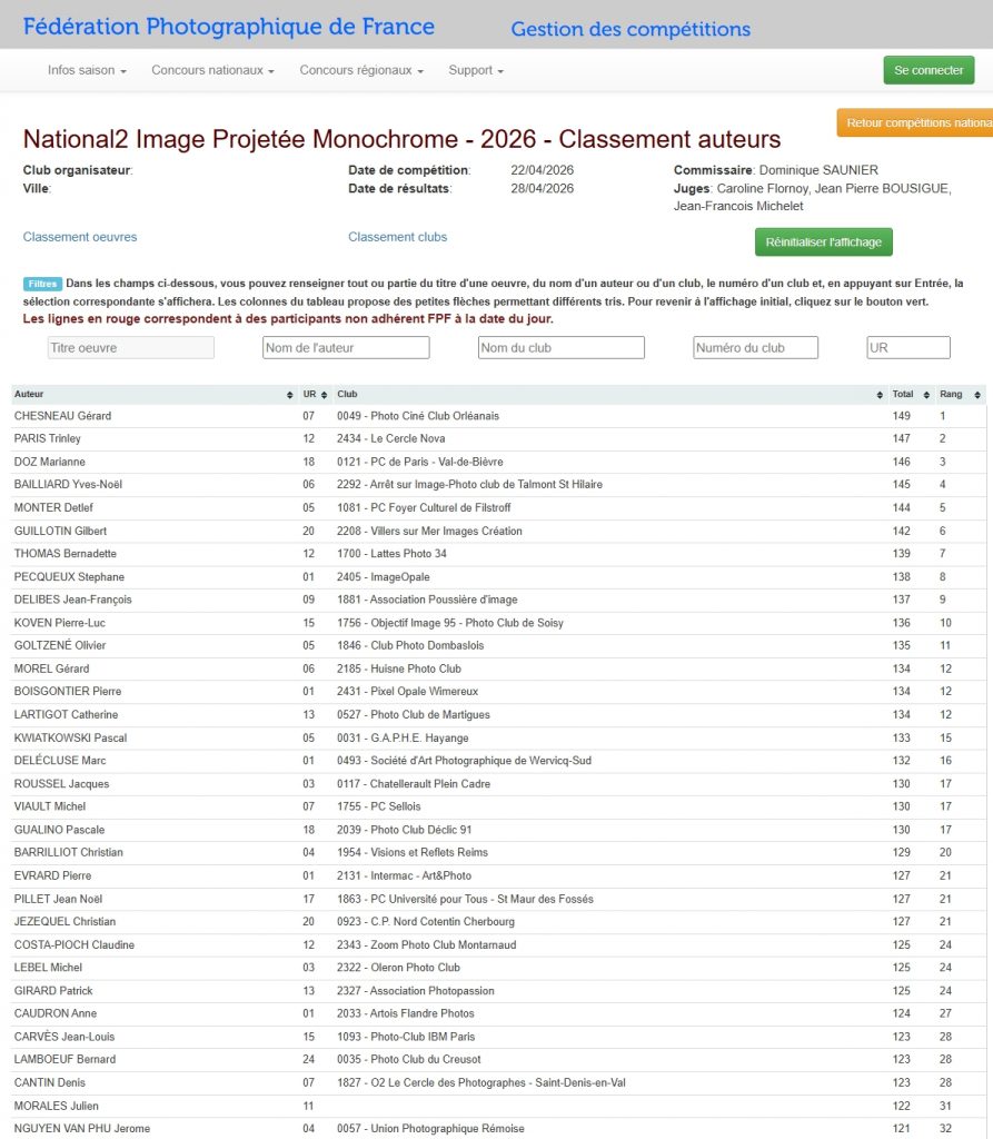 Classement Auteurs